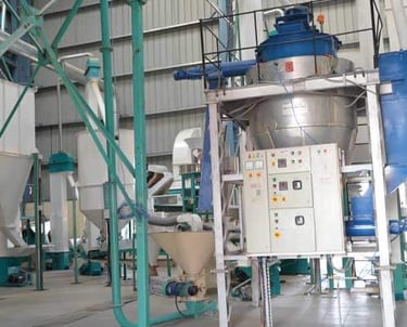 Spice Plant: modern processing unit for cleaning, grinding, and packaging spices with freshness and quality assurance.